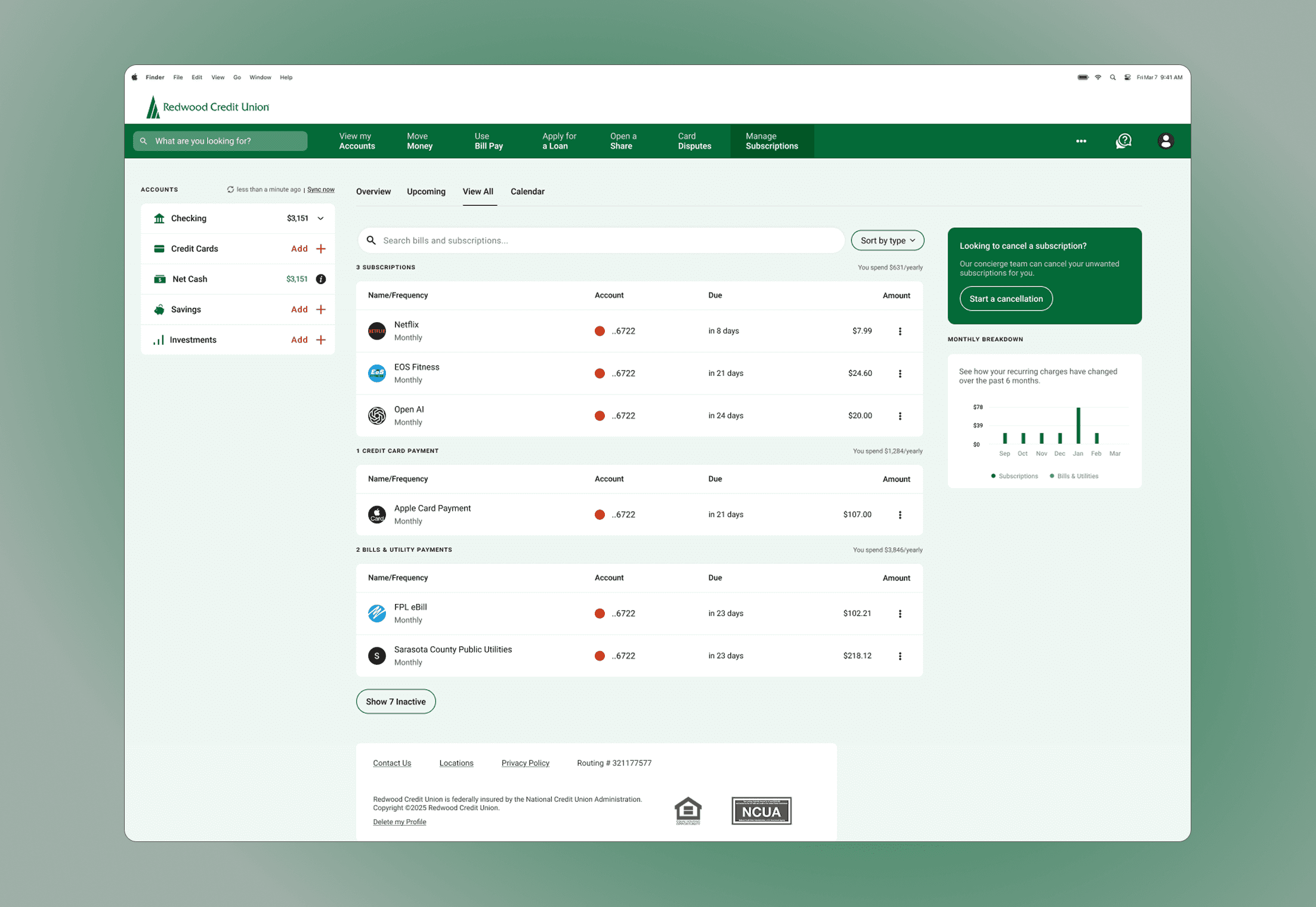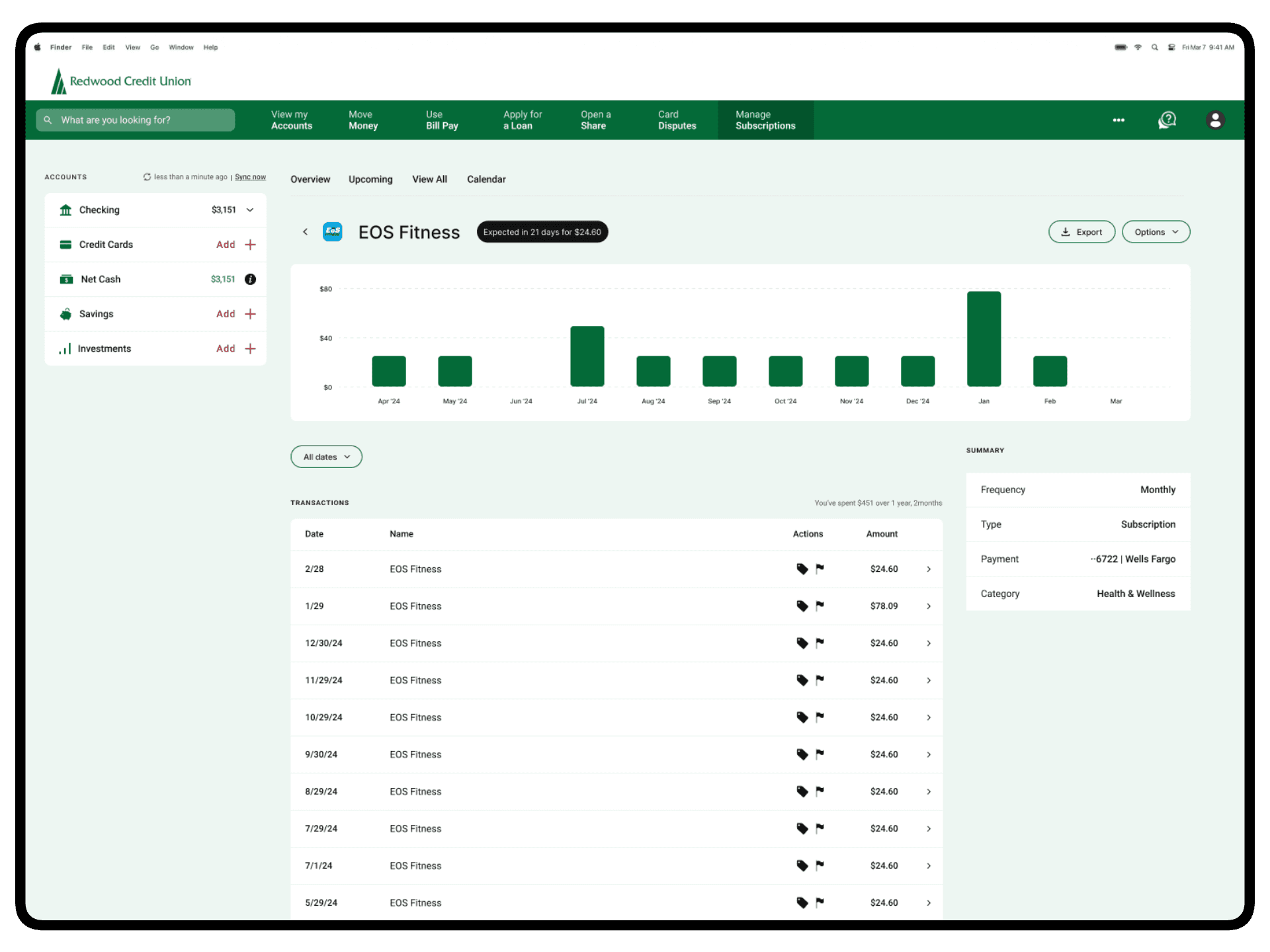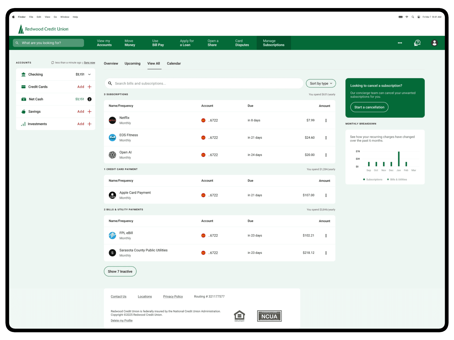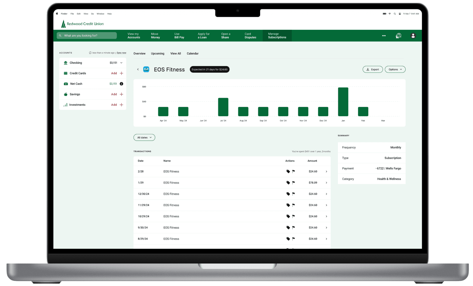 Eliminating the stress of subscription creep through an integrated management tool for Redwood Credit Union