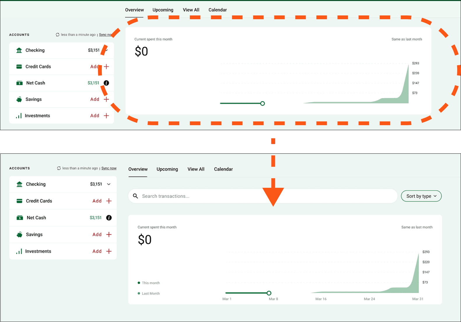 Data should be actionable, not just visible. Simply seeing charges and aggregated data are nice, but they do nothing to address the key friction of feeling out of control and overwhelmed. Giving users agency through key actions helps solve their underlying anxiety.